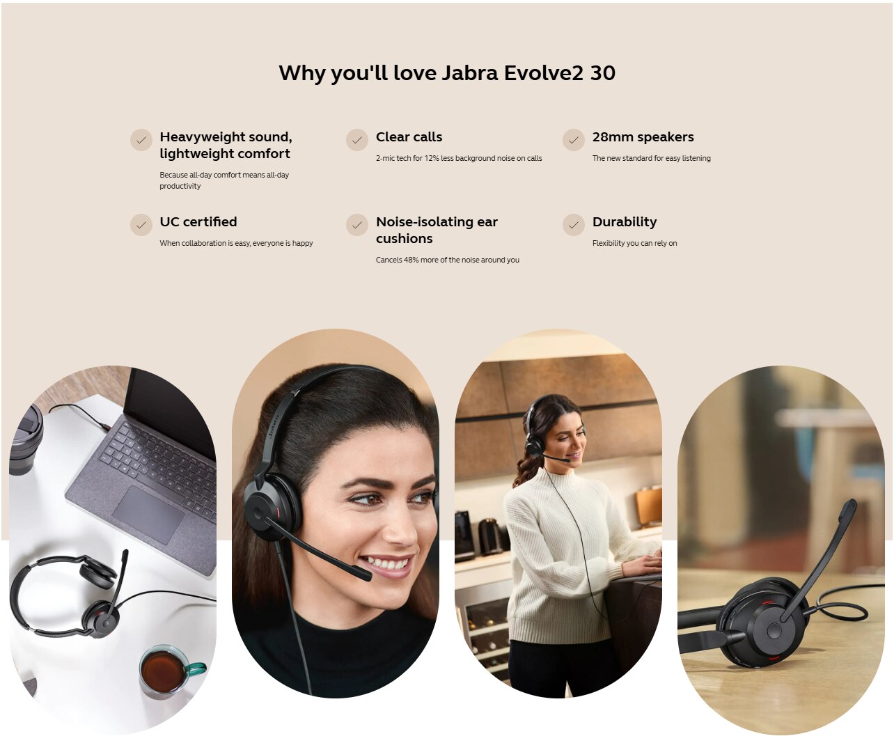 Jabra Corded Evolve2 30 SE UC Mono Headset, Usb-A by Jabra / GN Netcom SKU: 23189-889-979 Please log in to see price or purchase this item Quantity discounts available QuantityPrice DescriptionDescriptionJabra Corded Evolve2 30 SE
