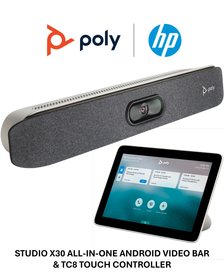 HP POLY Studio X30 All In One Android Video Bar with TC8 Touch Controller.