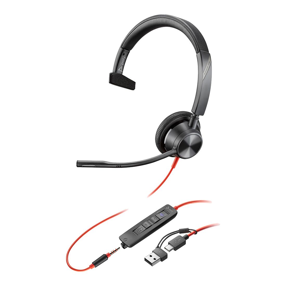 Poly Blackwire 3315 Monaural USB-C Headset for MS Teams with 3.5mm Plug +USB-C/A Adapter