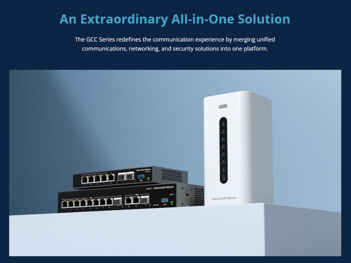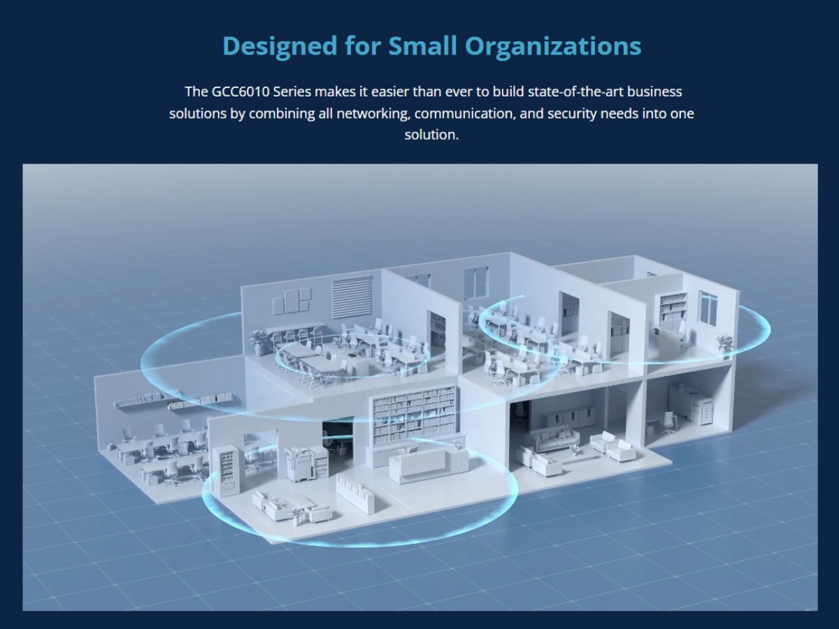The GCC6010 Series provides an extraordinary all-in-one solution that merges unified communications and networking solutions into one platform. These state-of-the-art devices combine the functionality of 4 products to provide an all-in-one solution that includes a VPN router, next-generation firewall, IP PBX, and network switch or Wi-Fi access point. The Series includes three models: GCC6010, GCC6010W, and GCC6011.