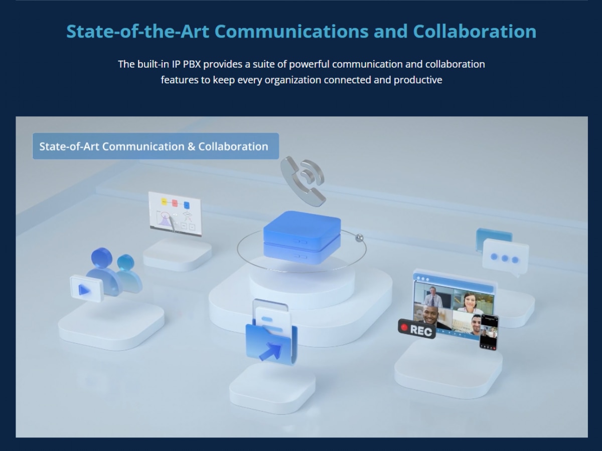 - Built-in IP PBX provides voice & video communications with advanced collaboration features
