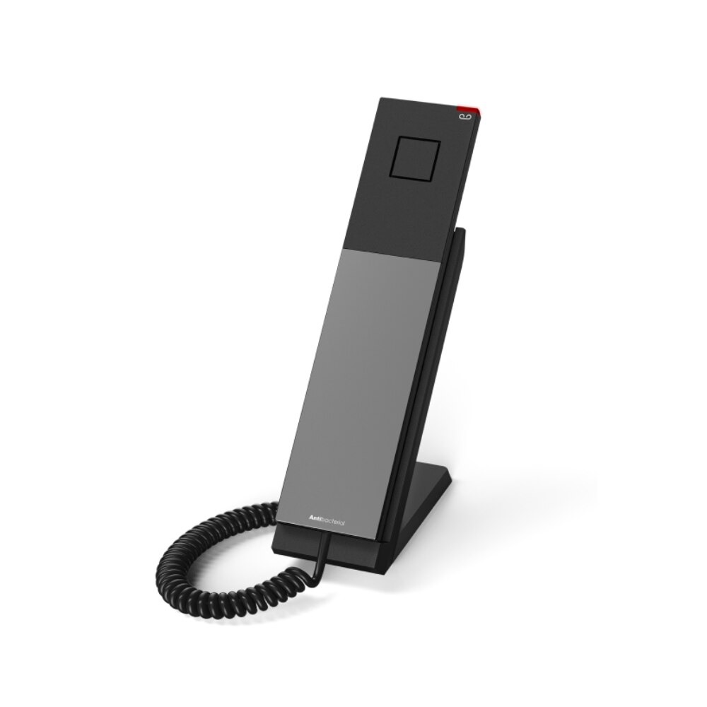 The Snom HD300A is a cleverly designed, corded analogue telephone that has been specially developed for the requirements of the hotel and accommodation sector. It not only impresses with its elegant design, but also with its high level of functionality and user-friendliness. A particular highlight is the antibacterial housing, which offers effective protection against germs and therefore fulfils the high hygiene requirements of everyday hotel life. The phone's highly visible LED ensures that guests are easily alerted to incoming calls or waiting messages, which significantly increases the comfort and satisfaction of your guests.