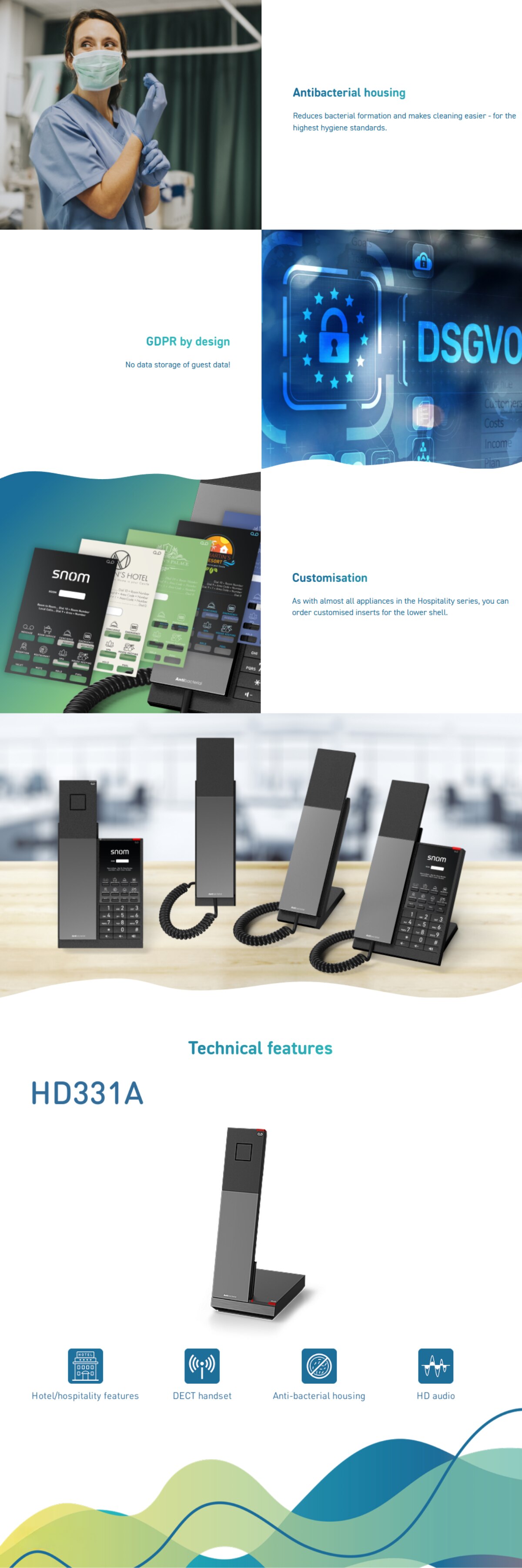 Whether for classic hotels or guest houses - the Snom HD331A is robust and modern in design and reliably meets all the requirements of a functional and user-friendly room telephone
