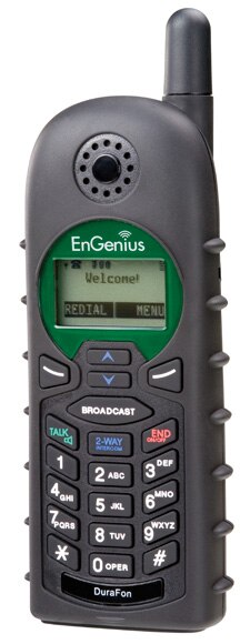 The DuraFon PRO Handset functions as a cordless phone and a two-way radio. It is durable, rugged and features six (6) hours of talk time or 50 hours of stand-by time before recharging. It offers extreme long-range capabilities and is hearing-aid compatible.